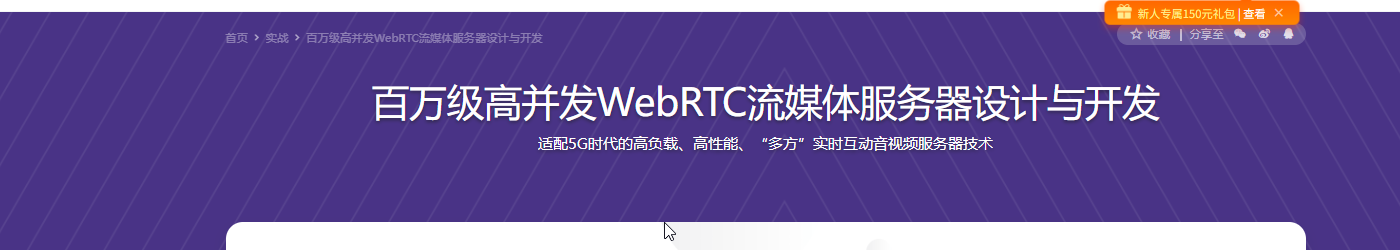 本课就将围绕与浏览器互通、级联、可扩展等6大痛点手把手带你学习大负载、高并发、高性能 WebRTC 流媒体服务器的设计与开发,揭秘万人互动直播背后的深层奥秘,打造可负载百万用户量的企业级的流媒体服务器。