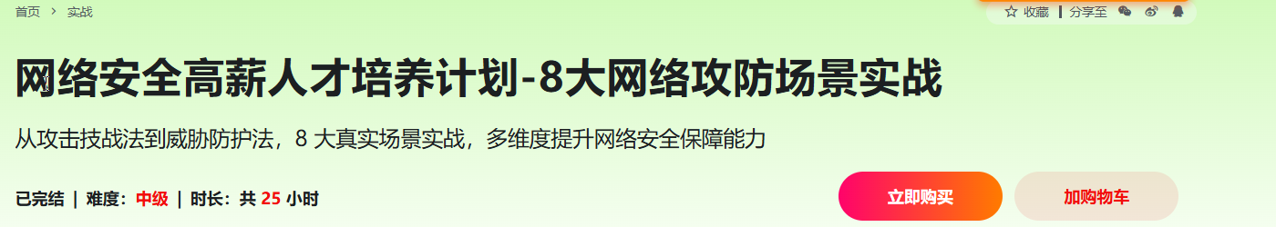 网络安全是企业安全的重中之重,谁能解决网络安全问题,谁就能成为企业持续需要的高薪核心人才,网络安全职业发展前景非常可观。因此,慕课网全新推出网络安全高薪人才培养计划,课程将通过8大网络攻防场景实战,带你掌握8种经典网络攻击原理、攻击过程、事故处理技巧,以及安全防范加固技术,多维度提升网络安全防护能力。如果你希望成为企业不可或缺的人才,那就来学习这门课吧!