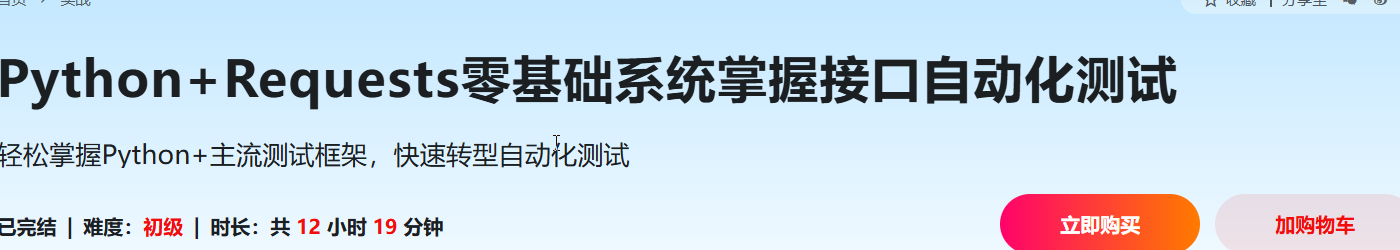 接口测试工程师越来越值钱,企业招聘需求旺盛,但网上的教程大多都比较零散,不系统。 本课程结合老师多年实战经验,手把手带你 从Python编程基础学起,首先让你具备自动化脚本编写能力,然后以实际项目驱动,带你快速提升主流测试框架Pytest+Requests+Allure整套接口自动化测试实战能力,最后融合老师多年面试官经验,助力你快速转型成为更具竞争力的Python自动化测试工程师。
