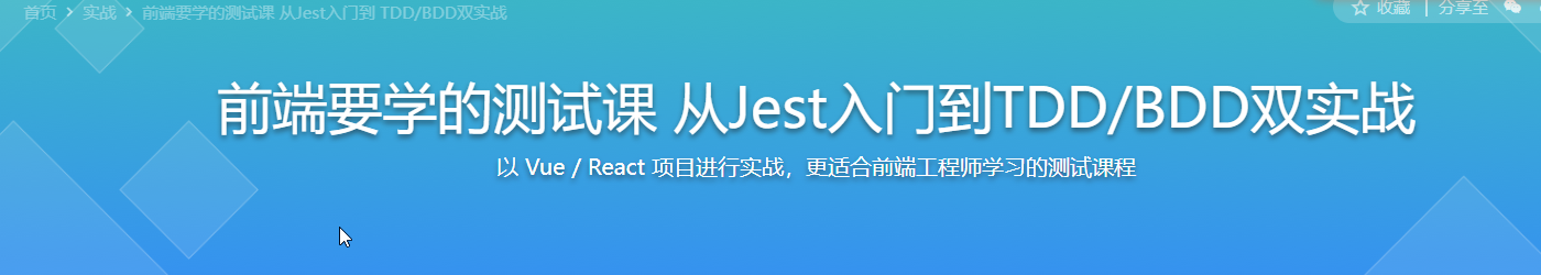 课程简介:课程包括前端自动化测试框架 Jest 的讲解,React 中 Enzyme 组件测试工具的讲解,Vue-test-utils 的讲解,以及 TDD,BDD 测试模式的讲解,单元测试,集成测试的讲解。让你形成自己的测试方法论,提高核心竞争力。