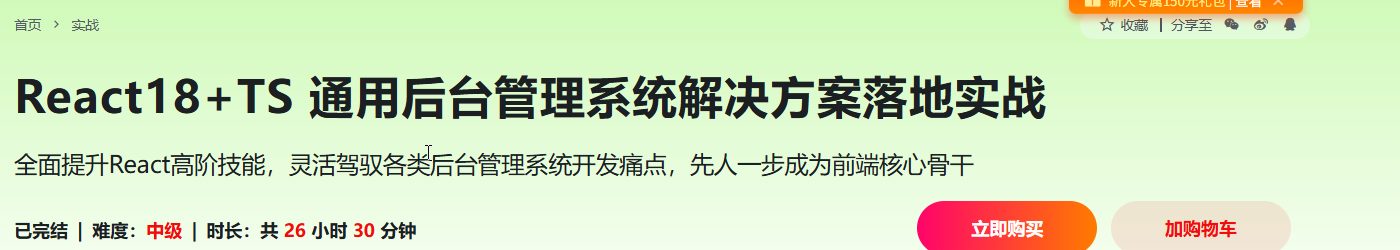 具备中后台管理系统开发能力,已成为优秀前端工程师的标配。本课程将基于React18 全家桶+Vite4.0+Typescript4.0,带你从需求分析、业务核心实现到性能优化,全流程打造“幕幕货运”后台管理系统。你将学到复杂业务拆解、权限方案设计、性能调优、上传下载、 大屏设计、地图应用、暗黑主题、订单统计、业务组件封装、自定义Hook、函数封装等满满干货。线上体验:http://driver.marsview.cc
