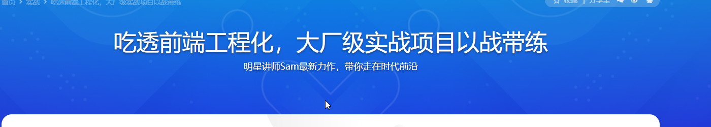 前端工程化 ≠ Webpack ,真正的前端工程化覆盖一个项目从创建到开发到发布的整个流程,既是目前大厂主流的项目提效方案,更是高薪面试 “必考项”!课程通过三个接地气的大厂级实战项目,循序渐进的帮你构建前端工程化体系,塑造全局视野,帮你实现从前端工程化的“践行者”到“领导者”的蜕变!