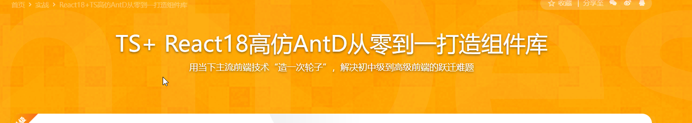 从零到一高仿 AntD 使用 Typescript 和 React 开发组件库,在这其中穿插了一系列的知识点: 大型项目的样式组织,react 组件测试,react 动画实现。开发完毕还实现了模块化打包,代码发布再到 CI/CD 的全流程。