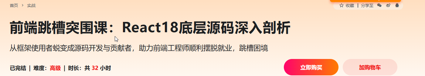 在当下就业环境下,会使用框架只是基本素质。想晋升高级别岗位,获得更多高薪机会,你需要熟悉框架底层原理,甚至具备手写框架等高阶技能。如果你想快速进阶,又没有方向和路径,那本课程就是你的不二之选。课程首先会带你深入React框架底层原理,掌握React源码调试技巧,之后带你手写一个框架,最后教你如何成为源码贡献者。通过体系化教学,助力你先人一步具备进阶技能,从容应对更高级别的工作挑战。