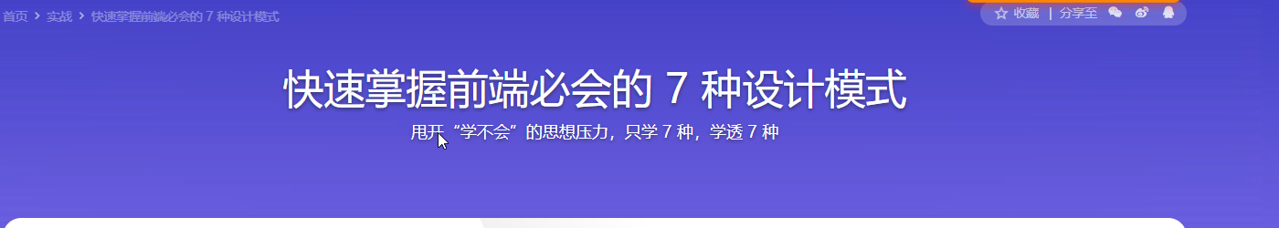 从“写代码”到“写好代码”到“设计代码”,不仅是技术的提升,更是编程思维的提升,其中关键的就是设计模式。但很多人想学习设计模式时,往往是查到的资料一堆,有用的知识少见,学得云里雾里,难以实践。本课从23种设计模式中精选前端常用的7种设计模式,利用场景化实例教学,让想学的人尽可能学明白、会应用、能实践。
