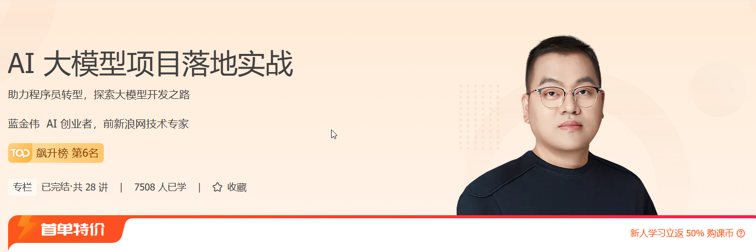 蓝金伟老师将自己的积累,融入到一个个完整的项目中,为你全面讲解大模型 AI 的基本原理和应用框架。通过系统学习,你将能够独立进行基于大模型的设计和开发。一系列真实项目的实战演练,也能让你获得宝贵的实战开发经验。甚至每一个完整项目中也融入了项目的商业思考,随着课程的展开,你也将形成 AI 产品的商业感知,判断手头项目的可行性。