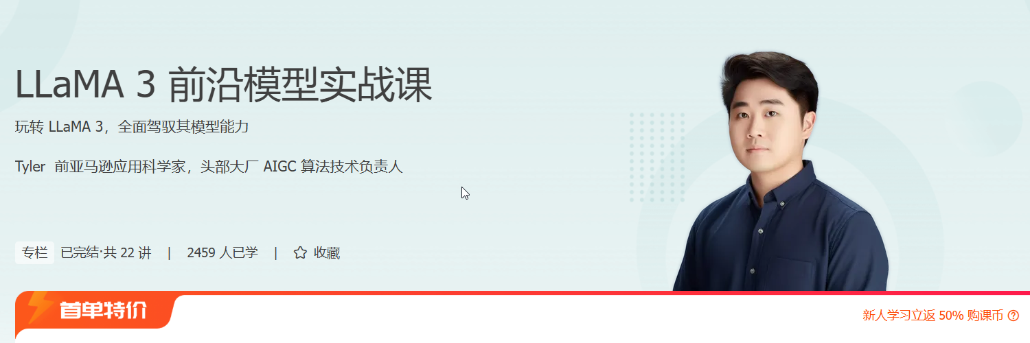 为了让你更好地激发 LLaMA 3 的潜能,掌握 LLaMA 3 编程的实用方法与最佳实践,我们特别邀请了 Tyler 开设了这门课程,他将采用 “Learn by doing” 的方法,通过实际代码示例带你探索如何将 LLaMA 3 应用于你的项目中,实现真正的智能化升级。这些案例也都可以用国内开源大模型 DeepSeek 跑起来。