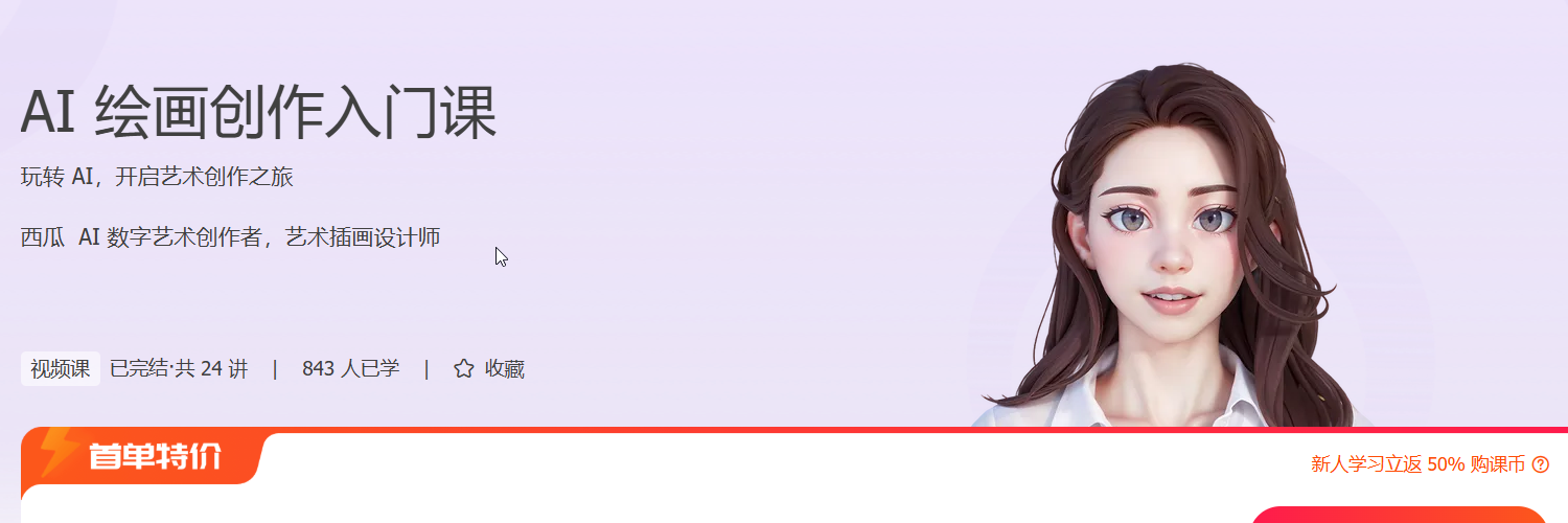 在这个 AI 技术迅速改变创意行业的时代,《AI 绘画创作入门课》将为你打开一扇通往未来艺术的大门。课程由资深 AI 数字艺术创作者西瓜老师主讲,聚焦 Midjourney 与 Stable Diffusion 两大主流工具,帮助你从零掌握 AI 绘画的核心技能。通过 22 节系统课程,你将不仅学会 Prompt 编写、图像生成与优化、本地部署等关键技术,更能在创意插画、IP 设计、艺术海报、产品设计等 8 大实战项目中提升综合能力。无论你是零基础新手,还是希望拓展技能边界的设计师,这门课都能助你实现突破。掌握 AI 绘画,不仅是对创作方式的升级,更是职业发展的新跳板。学完课程后,你将具备将作品商业化的能力,探索 AI 绘画在版权、变现、品牌设计等领域的无限可能。现在就开启你的 AI 艺术之旅,让技术为创意赋能,成为走在时代前沿的多元成长型人才。