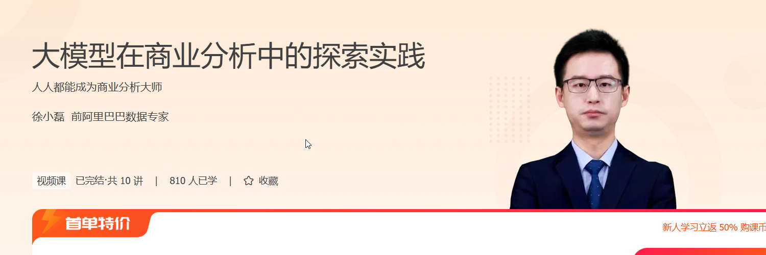 在 AI 与大模型迅猛发展的今天,商业分析已进入智能驱动的新纪元。本课程《大模型在商业分析中的探索实践》由前阿里巴巴数据专家徐小磊主讲,带你掌握 AI 赋能商业决策的核心能力。通过五大模块系统学习描述性、推断性与预测性分析,结合电商、内容运营等真实场景,全面提升数据洞察与业务决策能力。课程融合 Python 数据分析技术,覆盖 Pandas、Matplotlib、Seaborn 等工具实战,深入讲解 RAG、多模态等前沿趋势。你将掌握数据清洗、分组统计、可视化呈现,以及预测模型构建等关键技能。无论你是后端开发者还是架构师,都能借此拓展技术边界,提升系统级数据分析与智能架构设计能力,为职业升级注入强劲动能。