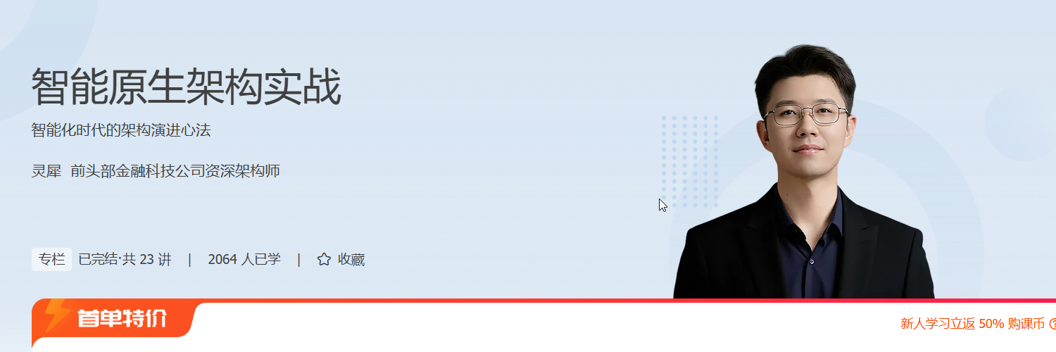 为了帮你解决上述困惑,我们邀请了灵犀老师开设这门《智能原生架构实战》课程,为你带来一线架构师在企业实践中,基于大模型规划和重塑企业系统架构的深刻思考与落地经验。