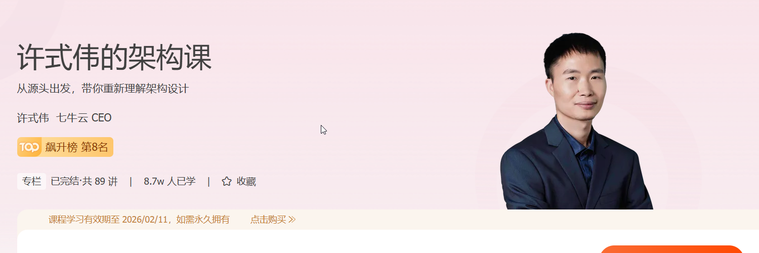 在后端与架构领域,系统设计的深度与广度决定了软件的稳定性、扩展性与未来演进空间。本课程由七牛云 CEO 许式伟主讲,从冯·诺依曼体系到操作系统原理,从桌面与服务端平台构建到架构思维养成,系统梳理了软件架构设计的核心脉络。你将掌握服务治理、高可用设计、分布式系统构建等关键能力,并通过“画图程序”这一贯穿始终的实战案例,理解从底层逻辑到上层业务的完整架构演进过程。课程不仅教你技术,更培养你对业务、系统与团队的全局判断力,助力你从开发者成长为真正掌控全局的架构师。