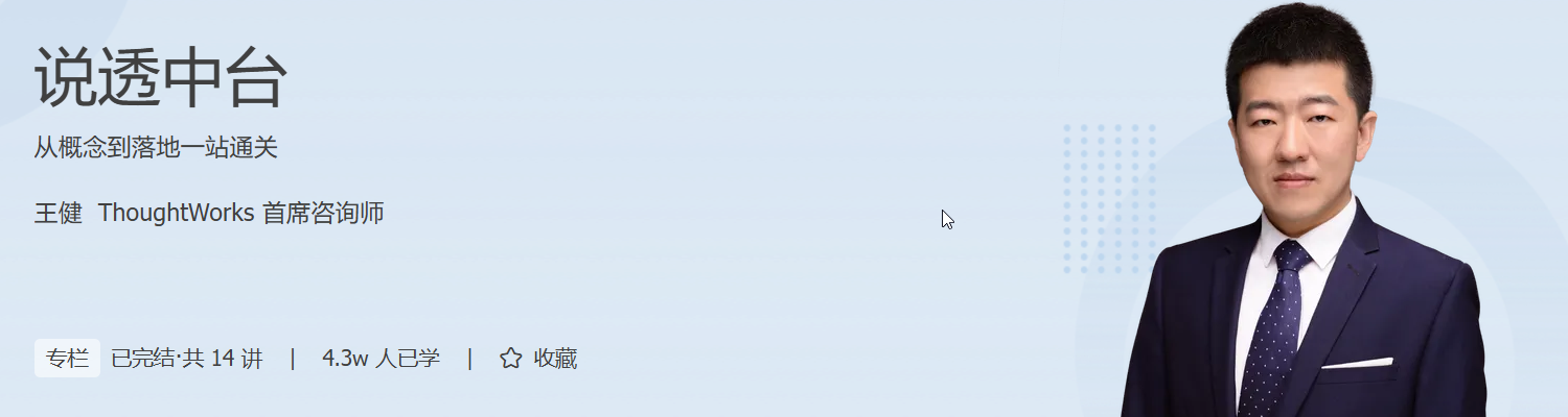 为了解决这些疑惑,我们邀请王健老师出品了“说透中台”专栏课程,一起来讨论中台的概念和本质,并探索中台落地的路线图。