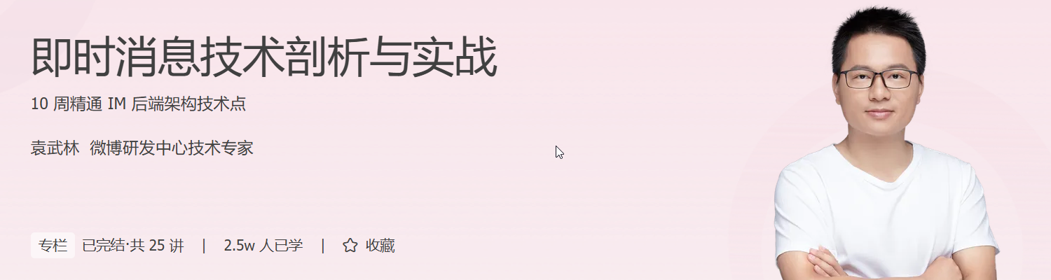 你是否好奇微信、抖音背后的即时通信技术如何支撑亿级用户实时互动?《即时消息技术剖析与实战》课程带你系统掌握 IM 后端架构核心能力,涵盖网络通信、高并发优化、分布式设计、消息队列等关键技术。从基础的消息收发、ACK 机制,到高可用架构、万人群聊设计,再到 Docker 容器化、CDN 加速等实战技能,层层进阶,助你构建完整 IM 知识体系。通过真实项目实战,你将亲手搭建高可靠、高并发的 IM 系统,掌握从架构设计到性能调优的全流程能力。学成后,无论投身社交、直播、在线教育,还是挑战高并发系统架构师岗位,都将具备更强竞争力。