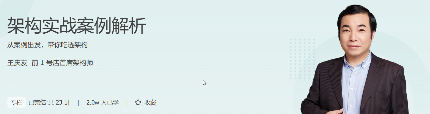 但到底怎么才能领悟到架构之道呢?为了回答这个问题,我们邀请到了王庆友老师,在专栏中,他会以自己职业生涯中积累的实战项目为蓝本,带你透过现象看本质。