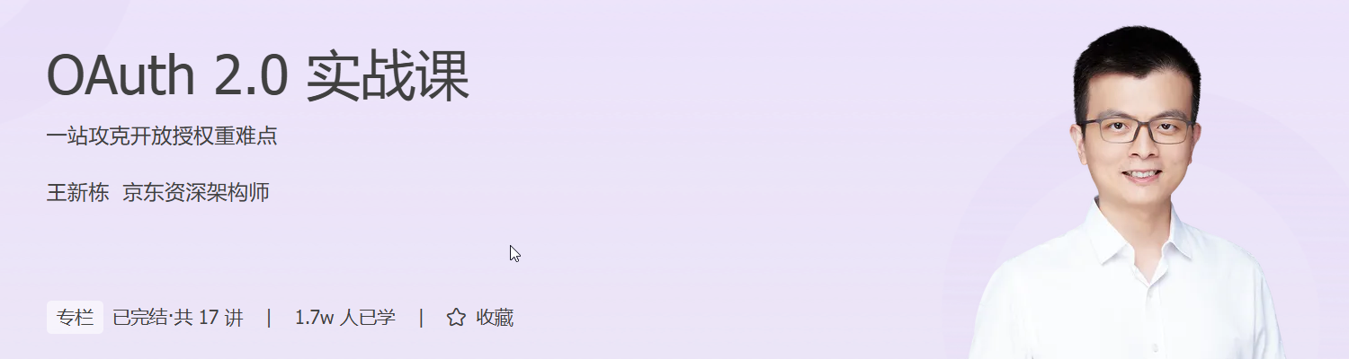 为此,我们特意邀请了王新栋,他会结合自己在开放平台上的工作经验以及对 OAuth 2.0 的理解,一次性地给你说透授权这件事儿,力求给你带来最贴近本质的 OAuth 2.0 知识,让你能够用对、用好这个协议。