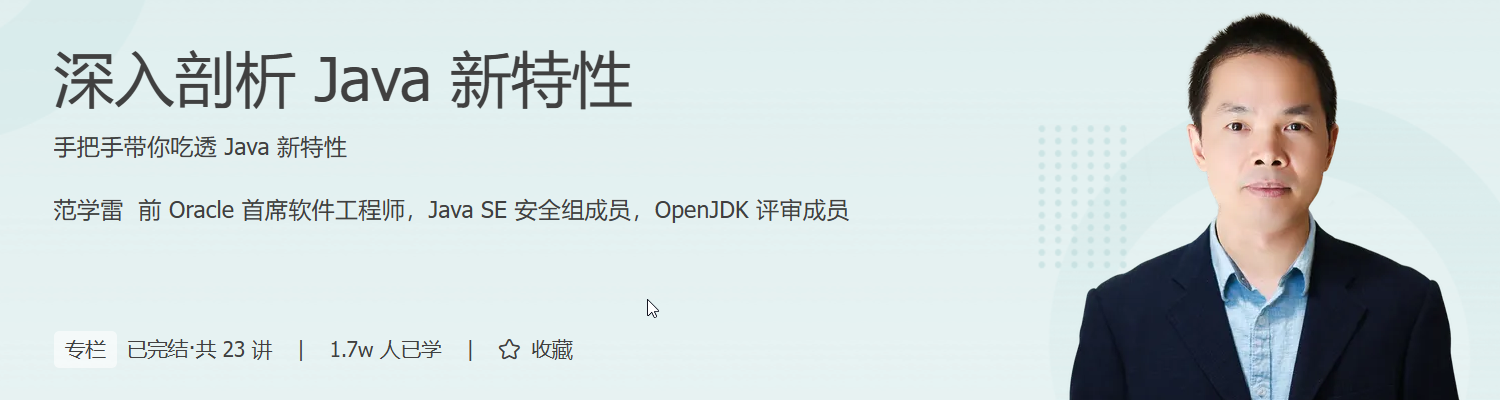 所以说,对新特性的抗拒并不是明智之举,如果哪天你一觉醒来发现主流企业都已经在使用 JDK 11 甚至 JDK 17 了,很可能就会面临“书到用时方恨少”的尴尬。因此,我们请来了 Oracle 的首席软件工程师范学雷老师来给你深入剖析一下 Java 新特性。
