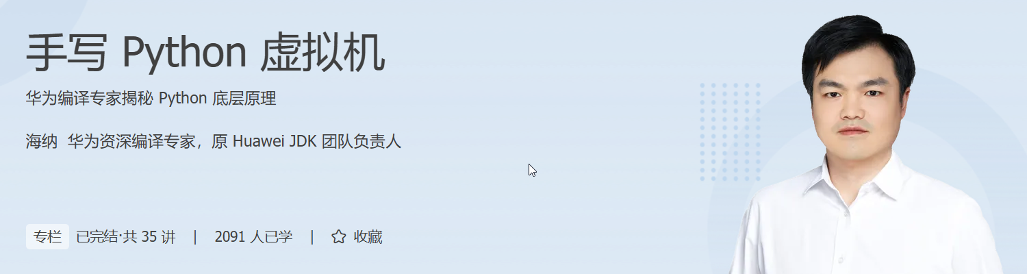 在人工智能技术迅猛发展的今天,深入理解编程语言底层机制已成为开发者提升核心竞争力的关键。《手写 Python 虚拟机》课程由华为资深编译专家海纳主讲,通过动手实现 Python 虚拟机,带你从零掌握 AI 底层语言系统的运行原理。课程涵盖控制流、函数机制、对象系统、内存管理与垃圾回收等核心技术,结合生成器、异常处理、模块系统等实战场景,全面提升编译与虚拟机开发能力。学习者不仅能深入理解 Python 执行模型,还将在实现虚拟机的过程中掌握高效内存管理、字节码解析与自动优化等高阶技能,显著提升系统级编程能力。这些能力在 AI 框架开发、模型优化、高性能计算等领域具有极强的迁移价值,助力你在人工智能时代抢占技术高地,迈向更广阔的职业发展空间。