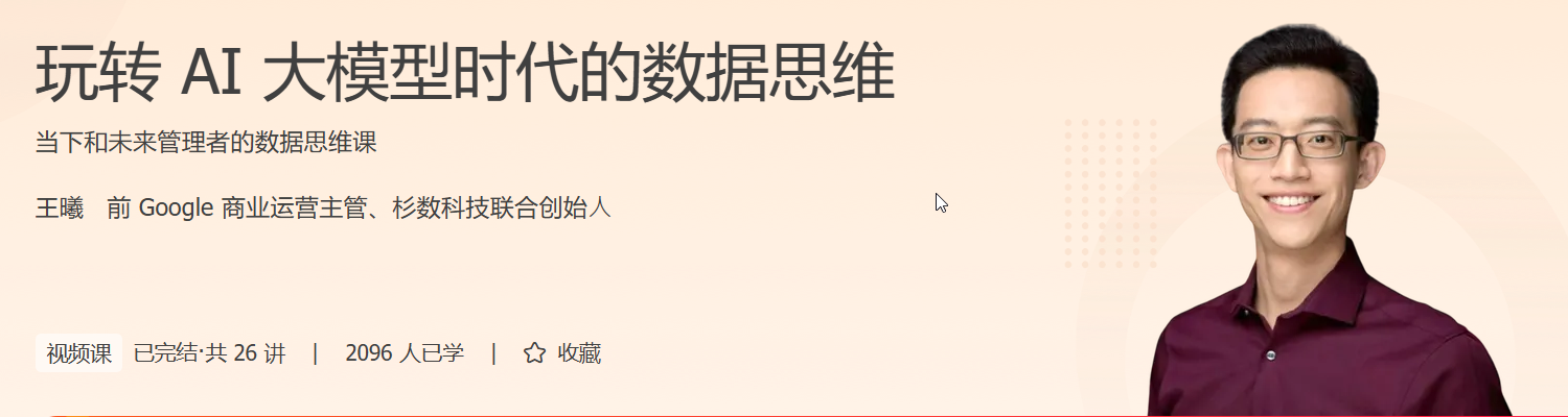 在 AI 与大数据交织的今天,后端开发者与架构师已不仅是技术实现者,更是业务决策的支撑者。《玩转 AI 大模型时代的数据思维》正是这样一门为后端 / 架构师量身打造的课程,助你在复杂系统中以数据驱动决策,提升技术与业务的双重价值。