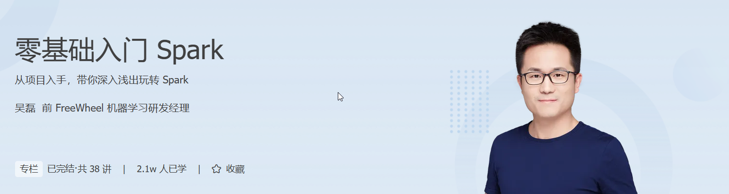 为此,我们邀请到了吴磊老师。他会结合自己这些年学习、应用和实战 Spark 的丰富经验,为你梳理一套零基础入门 Spark 的“三步走”方法论:熟悉 Spark 开发 API 与常用算子、吃透 Spark 核心原理、玩转 Spark 计算子框架,从而帮助你零基础上手 Spark 。