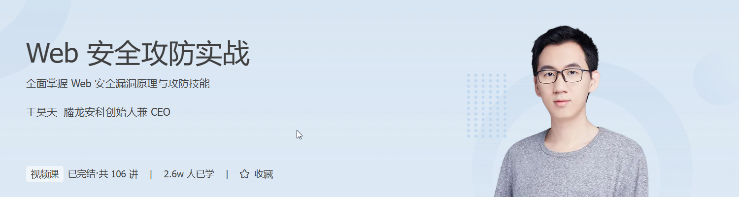 由于 Web 安全覆盖的知识面较广,涉及前后端、数据库、网络协议以及相关的渗透工具等等,所以,对于很多新手来说,如果想要在短时间内系统性地学习 Web 安全,并对各种常见漏洞有更深入的了解,并不是一件容易的事情。