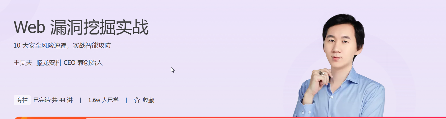 在后端与架构领域,安全漏洞可能引发系统性风险,甚至导致业务崩溃。本课程《Web 漏洞挖掘实战》由安全行业顶尖专家王昊天主讲,紧扣 OWASP Top 10:2021 榜单,系统讲解失效访问控制、加密失败、注入攻击、不安全设计等核心漏洞的挖掘与防御技巧。通过 sqlmap、XSStrike、潮汐社区平台等实战工具,结合真实攻击场景与自动化攻防流程,帮助你从黑客视角洞察漏洞本质,从工程师角度掌握修复方案。学习后,你将具备独立发现并修复 Web 系统安全缺陷的能力,提升代码健壮性,构建智能攻防体系,为向安全架构师或高级后端工程师转型打下坚实基础。
