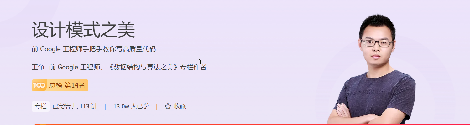 在后端开发与架构设计中,代码质量直接影响系统的可维护性、扩展性与协作效率。《设计模式之美》课程从编写高质量代码的方法论出发,系统讲解了面向对象设计、设计原则、编程规范、代码重构与 23 种经典设计模式的应用场景与实战技巧。课程不仅聚焦理论,更注重实践,通过 200+ 真实项目案例,结合 Spring、MyBatis、Guava 等主流开源框架的源码解析,帮助开发者掌握设计模式的灵活运用。