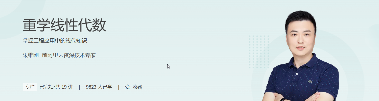 在人工智能领域,线性代数是构建算法模型与实现智能系统的核心数学基础。本课程《重学线性代数》由前阿里云专家朱维刚主讲,从基础概念到前沿应用层层递进,帮助你打通数学与工程之间的任督二脉。