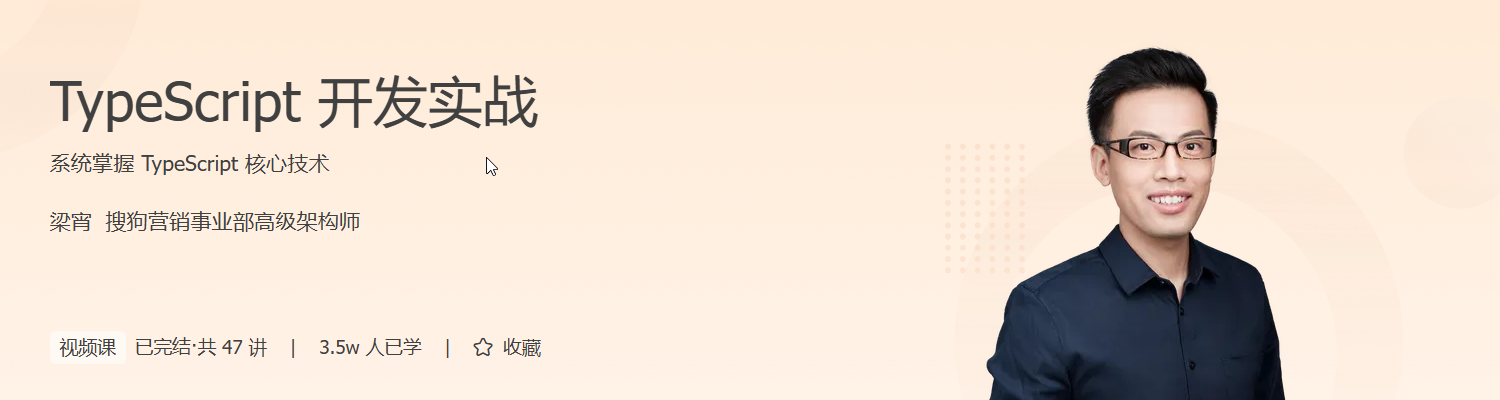 这门课程将从 TypeScript 的基础语法开始讲起,为你详细解读 TypeScript 的每个特性以及它与 JavaScript 的区别,并通过工程篇和实战篇的讲解,让你能够熟练使用 TypeScript 进行实战项目的开发。