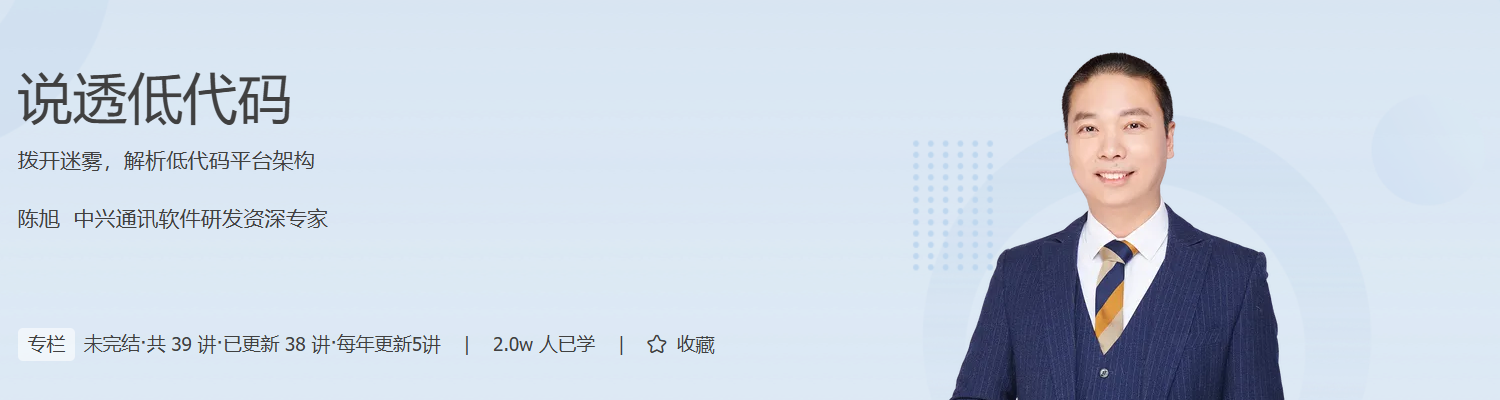 在动态更新阶段,也就是常规更新阶段结束后的四年之内,我们会以每年 5 讲的频率,继续更新,带你去看最新、最前沿的低代码技术动态,主要包括: