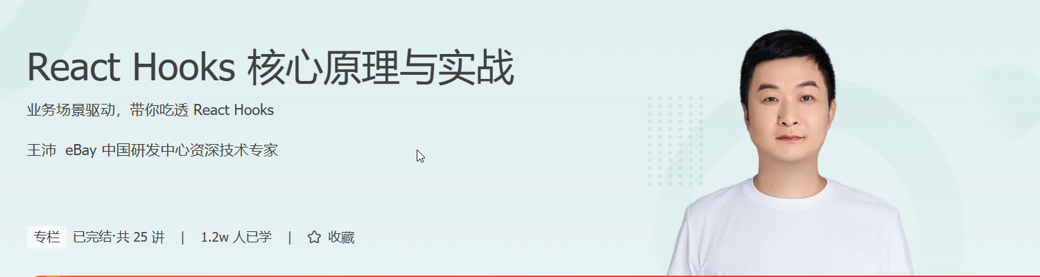 在后端与架构开发日益复杂的今天,掌握前端核心交互逻辑与高效开发模式同样至关重要。本课程《React Hooks 核心原理与实战》由 eBay 资深技术专家王沛主讲,系统讲解 React 函数组件开发模式,帮助后端 / 架构开发者打通全栈开发的关键环节。