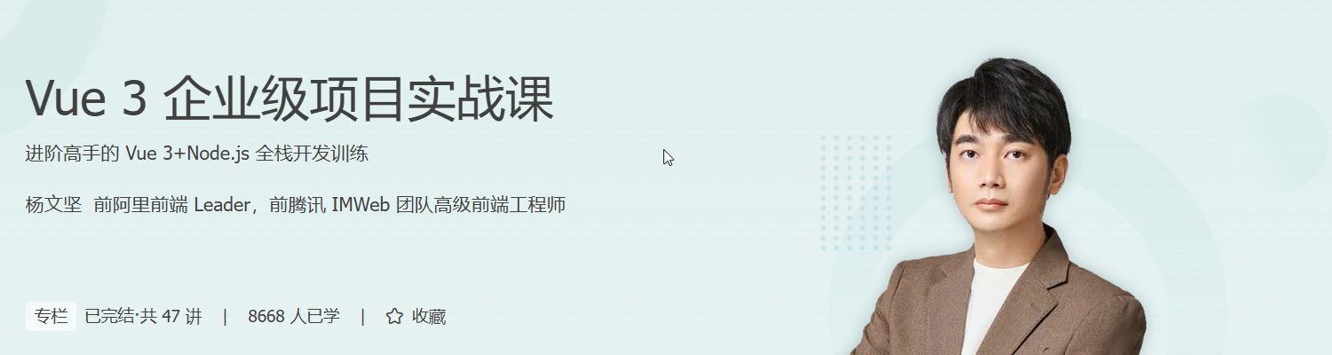 为此,我们请来了前阿里前端 Leader,前腾讯 IMWeb 团队高级前端工程师杨文坚老师。他会结合自己多年的大厂项目经历和丰富的技术培训经验,以热门的 Vue 3 框架为基石,带你从 0 到 1 完成一个企业级的全栈项目。