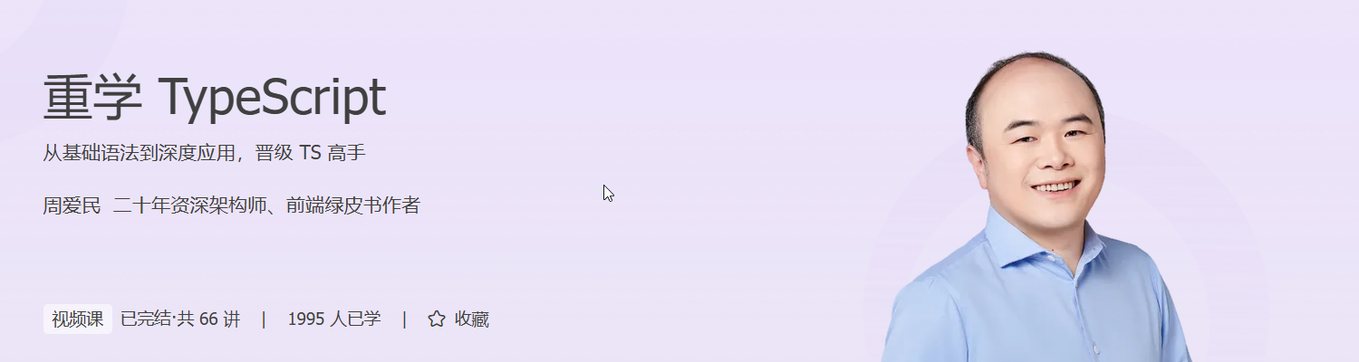 为了让你科学高效地掌握 TypeScript,我们特意邀请了周爱民老师推出这门《重学 TypeScript》视频课,通过大量的示例与跟学带练,一步步带你从 TS 新手晋升为 TS 高手。