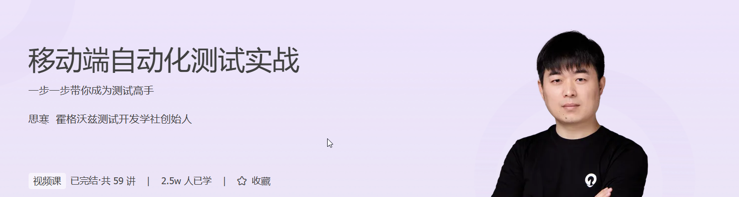 在移动应用快速发展的今天,掌握自动化测试技能已成为测试工程师的核心竞争力。本课程《移动端自动化测试实战》由思寒老师主讲,系统讲解 Appium 框架的实战应用,帮助你在真实项目中提升测试效率与质量。课程涵盖自动化测试理论、Appium 框架核心技能、多平台测试策略及自动化平台构建,内容从基础到进阶,层层递进。你将学会控件定位、TouchAction 操作、Page Object 设计模式、多设备兼容性测试、持续集成等关键技术,并能应对 Hybrid、H5、小程序等复杂应用的测试挑战。通过实战项目,你将具备独立搭建企业级自动化测试体系的能力,显著提升职场竞争力,为职业发展打开更广阔的空间。