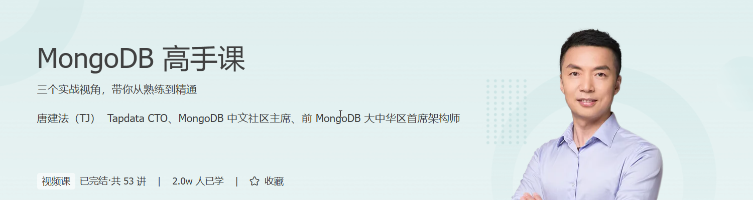 在后端开发与系统架构中,数据库的选型与使用至关重要,而 MongoDB 作为全球领先的文档型数据库,已成为众多高并发、大数据场景的核心支撑技术。本课程《MongoDB 高手课》由前 MongoDB 大中华区首席架构师唐建法主讲,系统覆盖从基础操作到企业级架构设计的完整知识体系。你将深入掌握文档模型设计、多文档事务、Change Stream、分片集群、两地三中心架构等关键技术,并通过 Oracle 迁移、Spark 整合、微服务与数据中台等真实场景案例,提升实战能力。课程还涵盖性能调优、安全加固、监控与备份恢复等运维级技能,助你胜任中大型系统架构师岗位,成为企业争抢的 MongoDB 技术专家。学完本课,你将具备从开发到运维、从设计到部署的全链路掌控力,显著提升技术竞争力与职业发展空间。