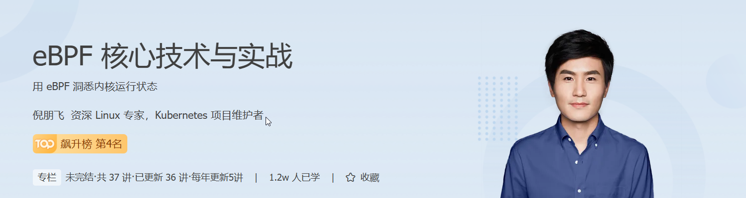 因此,我们邀请了资深 Linux 专家倪朋飞,一起打磨了这门动态发布的 eBPF 课程。这门课会全方位地解决你在学习和应用 eBPF 时候的重点问题,并带你随时跟踪 eBPF 最新的发展和案例。