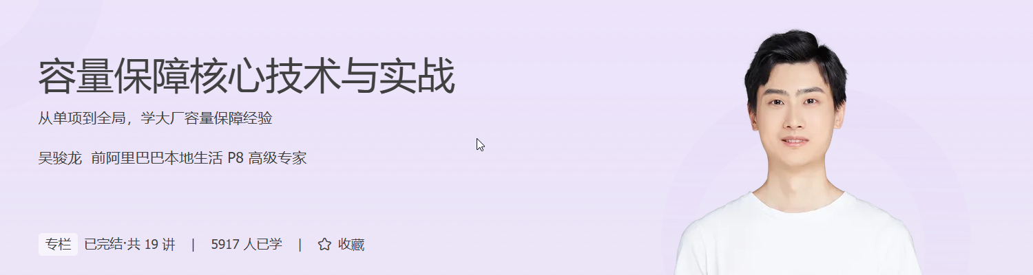 所以,我们邀请到吴骏龙老师,他会把在容量保障领域多年的经验,总结成方法论分享给你,帮助构建一个全局视角,让你不仅知道容量保障该怎么做,还能深入理解为什么要这样做。