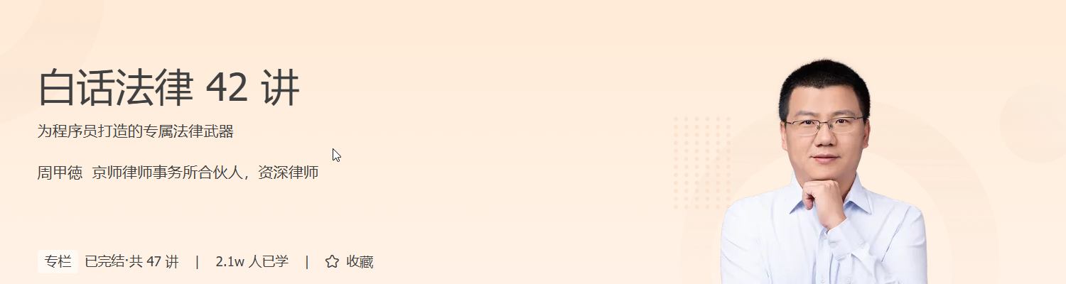 在数字化时代,技术与法律的交汇点往往隐藏着巨大的安全风险。《白话法律 42 讲》直击程序员在职场、技术操作与日常生活中的法律“雷区”,帮助你在复杂环境中守住底线、规避风险。课程从劳动合同、社保权益到技术行为边界、网络犯罪防范,层层剖析真实案例,如删库跑路、爬虫合规、外挂开发等热点问题,助你建立清晰的法律认知框架。你将掌握证据保留、仲裁诉讼等实用维权技能,理解如何在职场变动、技术操作甚至婚姻财产处理中做出合法应对。更重要的是,课程将提升你的法律敏感度和风险预判能力,为职业发展保驾护航,让你在技术道路上走得更稳、更远。