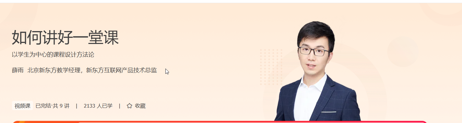 在这里,我们邀请了来自新东方的集团优秀教师薛雨,来给你分享他的讲课经验和技巧,他会围绕“以学生为中心”的课程设计原则,告诉你如何准备课程素材、如何设计课程逻辑架构、如何包装课程展现形式,并教你通过“教学七步法”来打造一个优秀的课堂。