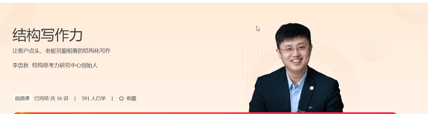 为了解决这些问题,让你真正掌握写作的底层逻辑,极客时间推出了这门精选合作课程,来自「结构思考力研究中心」。李忠秋老师将带着你从理论到实操,快速掌握写作的系统方法,让你在商务写作中不再一筹莫展,高效工作,赢得职场认可!