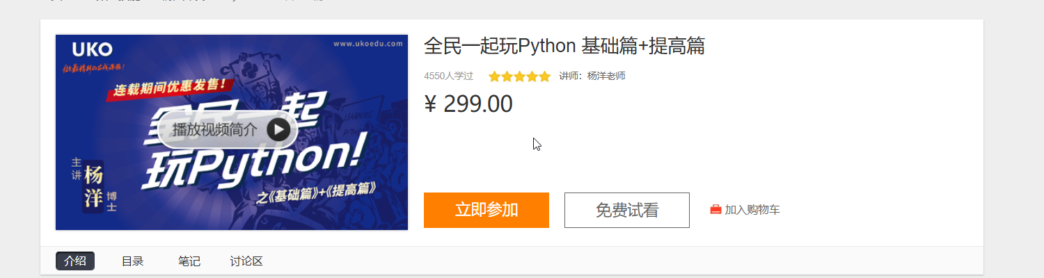 本课程是“全民一起玩Python”系列课程的前两部(不包含《实战篇》)。该系列课程由杨洋博士精心制作,包括《基础篇》、《提高篇》和《实战篇》,面向所有希望学习Python编程、进而能够在学习和工作中编写办公自动化、网页信息提取、数据分析处理、人工智能应用、娱乐游戏应用等实用程序的各行业人士。
