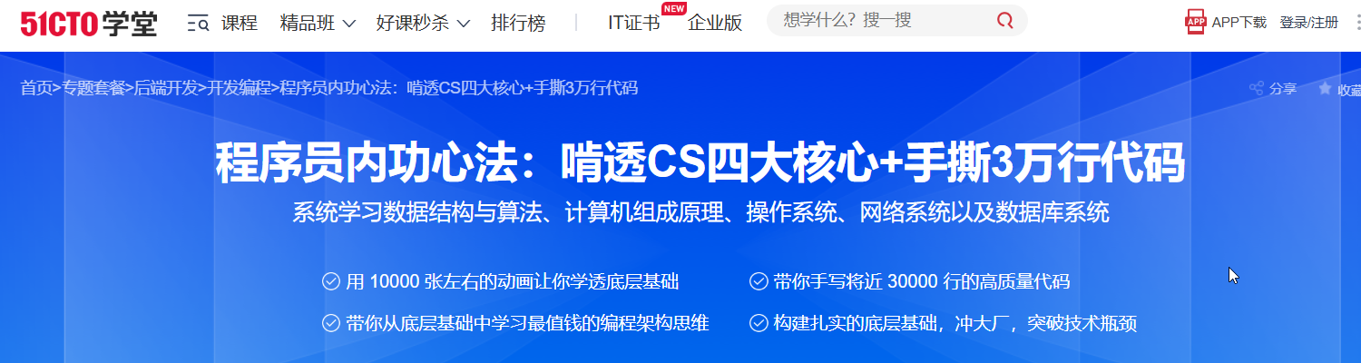 学习【底层基础】的方法有两种:第一种是通过看下面的书籍学习第二种就是跟着我的视频课程学习,跟着学完的话,相当于看了上面所有的书籍从 2020 年起,一直到现在,我就琢磨一件事:如何将【底层基础】讲的简单易懂?你可能听过学校老师讲的【底层基础】,但那是学院派,不仅听不懂,而且和实际工作联系不够紧密而我是实战派,我有着 14 年的编程经验,前面 8 年,主要在大厂工作,后面 6 年,主要是讲课我讲的【